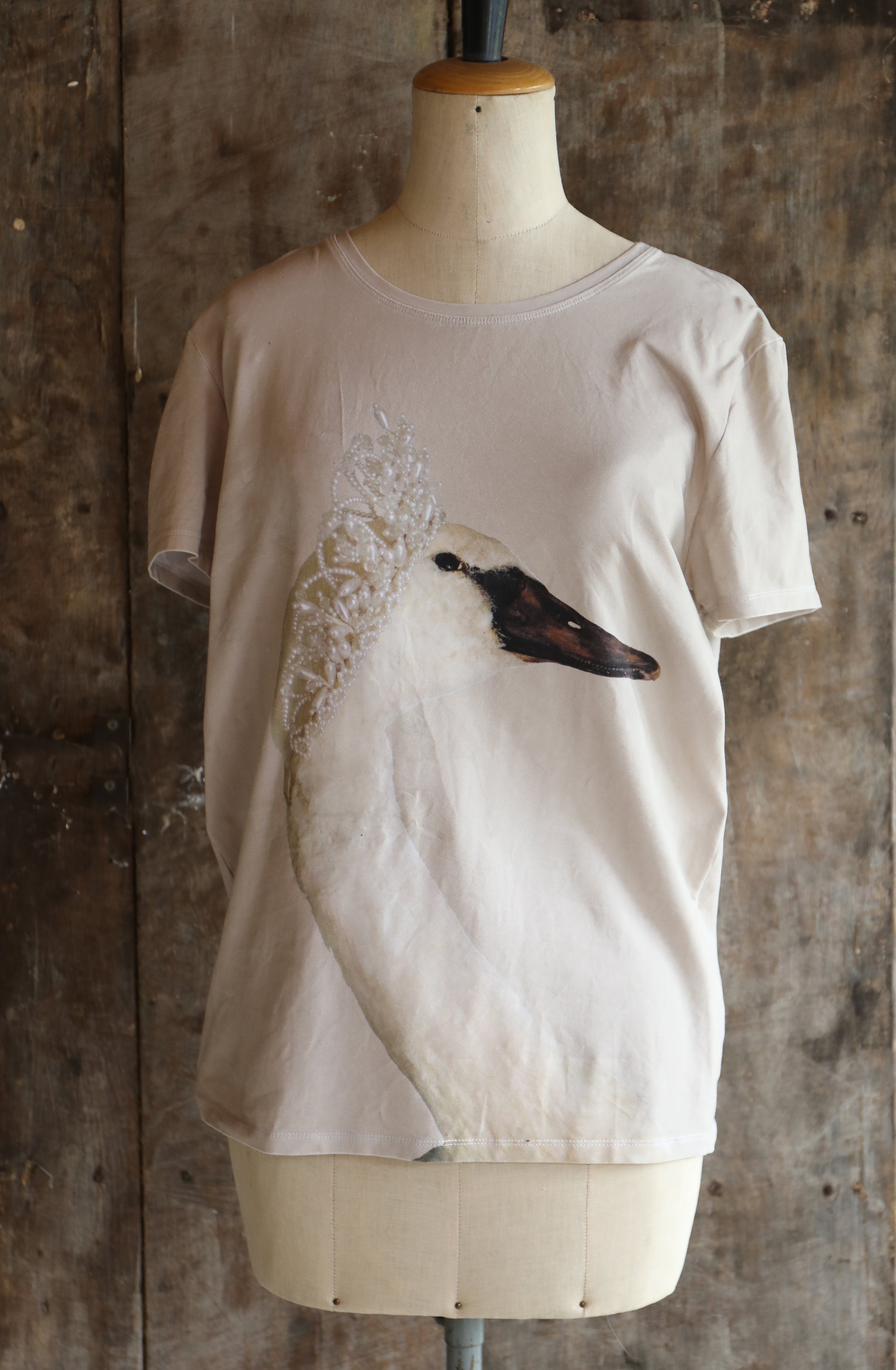 Meet Angel, the swan who has become the emblem of French & Wilder’s playful yet stylish aesthetic. This unique T-shirt transforms our iconic swan design into a wearable statement piece, blending whimsy, grace, and modern style. Angel is depicted in a serene, regal pose, complete with a delicate pearl tiara that adds a touch of fantasy to her natural beauty. The T-shirt is versatile and can be worn dressed down for everyday wear or styled up for something striking.