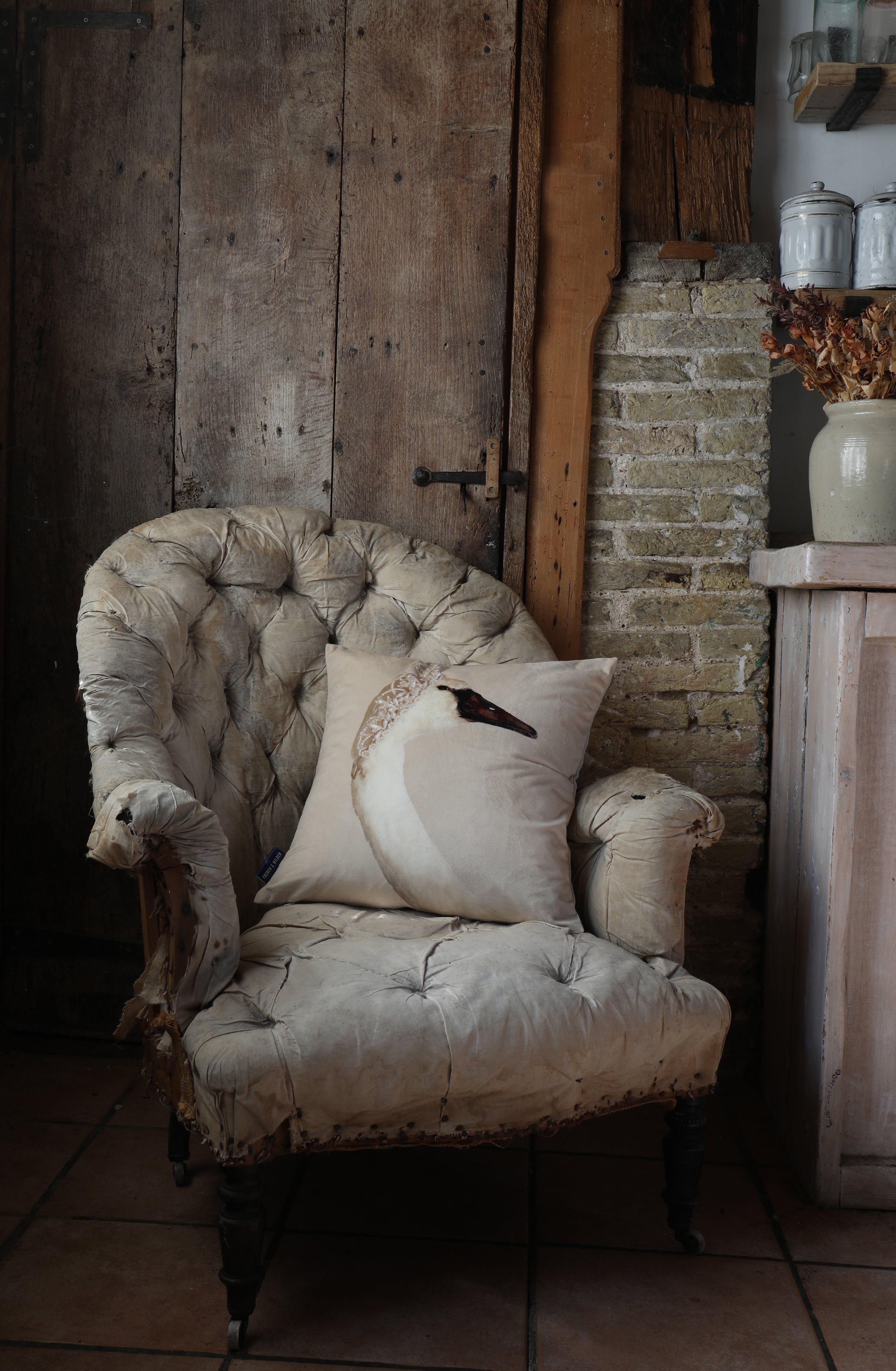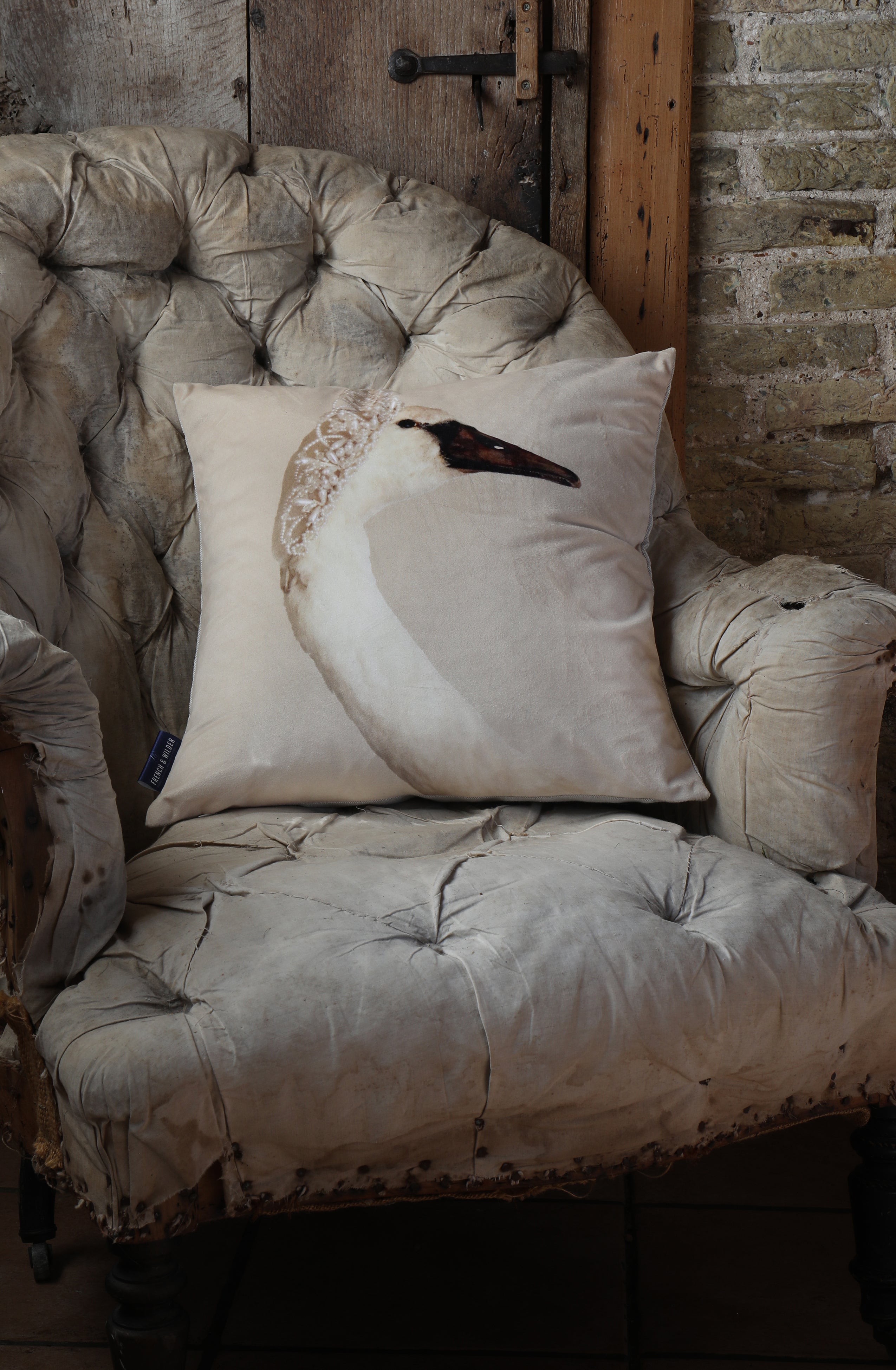 Our beloved swan motif takes centre stage in this opulent velvet cushion, complete with a jewelled tiara. The combination of soft, tactile fabric and majestic design adds instant glamour and comfort to your interior. The neutral colour palette along with the regal pose give this a decadent feel which would be at home in any elegant room.